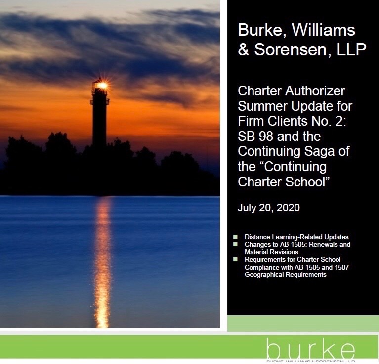 Charter Authorizer Summer Update for Firm Clients No. 2: SB 98 and the Continuing Saga of the “Continuing Charter School”